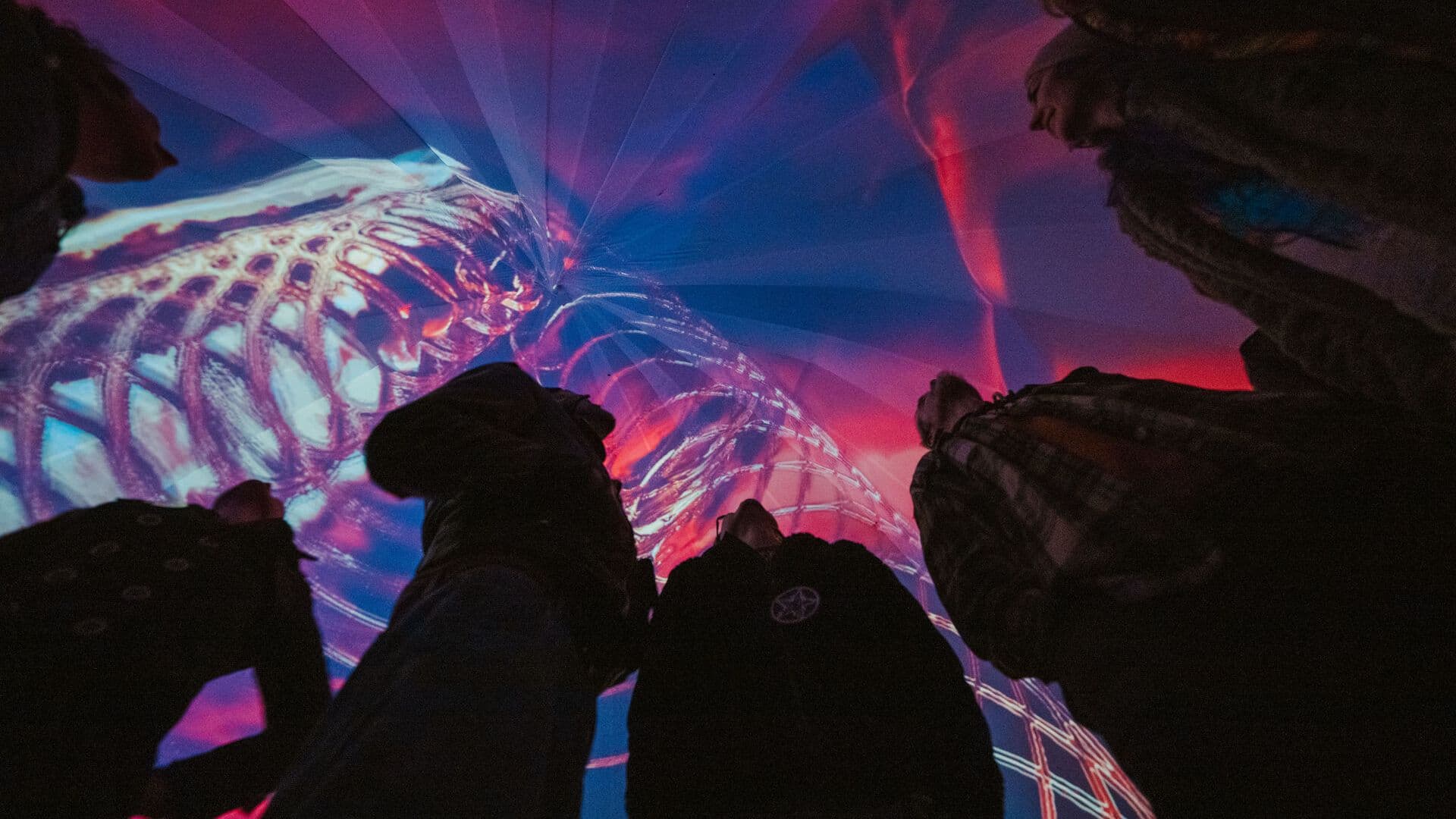 Inside the space, audiences are surrounded by a fully integrated performance environment combining sound, image, light, and atmosphere. Every surface becomes a canvas. Sound moves through the room in three dimensions. The boundary between performer and audience dissolves.